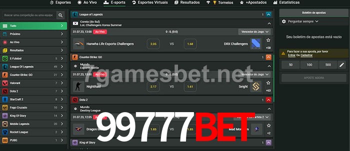 O 99777bet oferece uma grande seleção de opções de apostas em e-sports com probabilidades competitivas
